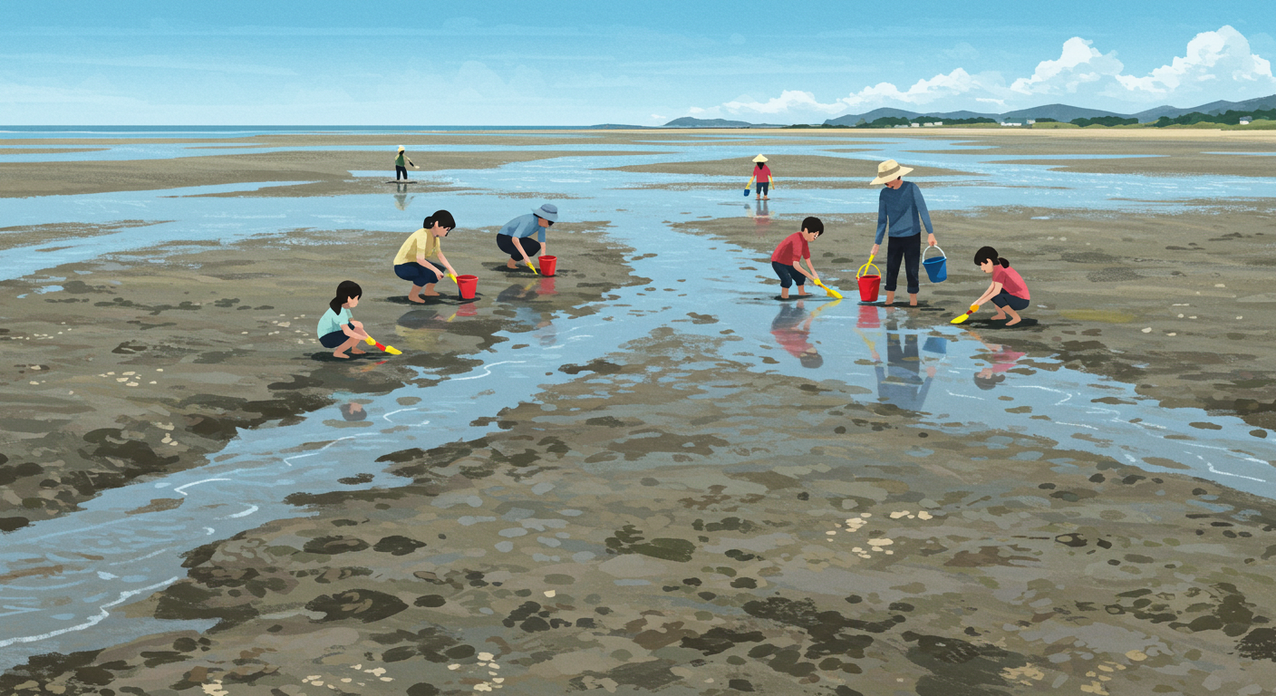 그렇다면 조개를 캐거나 갯벌 생물을 관찰하는 갯벌 체험은 언제가 최적일까요? 정답은 바로 "간조 시간 2~3시간 전후"입니다. 물이 가장 많이 빠졌을 때(간조)를 중심으로 앞뒤로 2시간 정도가 황금 시간대인 셈이죠.